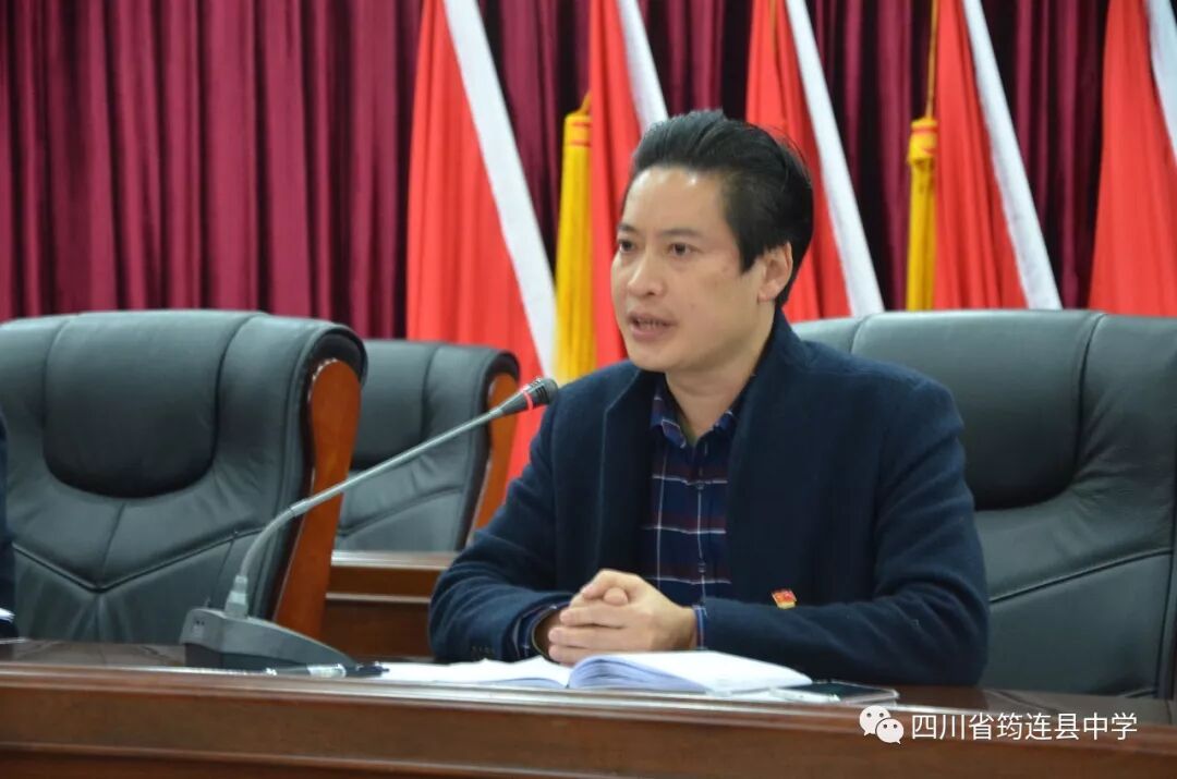 随后,周德林书记作重要讲话。他代表筠连中学党总支感谢全体同志对工作的支持,并从提高党员素养、培养优秀党员干部、强化组织管理三个方面,对我校党建工作提出了指导性意见。他强调:党员同志要有政治意识,大局意识、核心意识和看齐意识,要讲政治、讲规矩、懂大局,要以身作则、依法执教,发挥示范引领作用;他指出:党员干部要忠诚、干净有担当,学校需要想干事、能干事、干的成事的优秀干部;他要求学校党建工作要做到“五有二亮”:有人管(袁在方抓具体事务)、有阵地(各支部分别建标准党员活动室)、有经费(学校提供经费保障)、有内容(“三会一课”“两学一做”)、有宣传(微信、报纸、书刊),亮明党员身份,亮出服务承诺。周德林同志讲话的同时,与会同志认真记录、细心领悟,对我校的党群、党建工作的形势要求和自己肩上的责任有了更深入的认识。